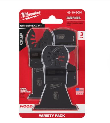 Our Universal Fit OPEN-LOK 3-Piece Wood Cutting Oscillating Multi-Tool Variety Pack offers you an assortment of our next-generation oscillating blades for optimal cutting performance in wood, PVC, drywall, and other soft materials. The oscillating wood blades are designed with aggressive, precision ground teeth for fast cuts in wood, drywall, and PVC. A 1-3/8 in end-cut blade, a 2-1/2 in end-cut blade, and 3-1/2 in segmented blade offer versatile cutting to ensure you have the right blade for the right cut. This MILWAUKEE oscillating tool blade variety pack is designed and made in the USA with global materials.