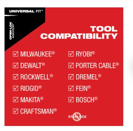 • Universal Fit OPEN-LOK Anchor For Quick Blade Changes