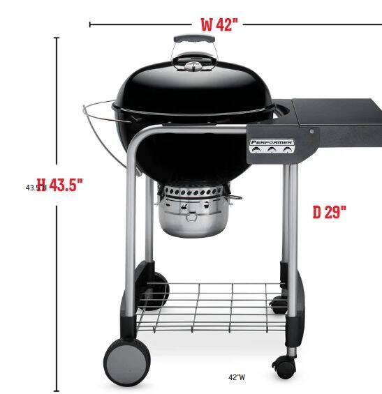 The powerful performance and convenient features of the Performer® charcoal grill is your excuse to ignite the coals every day. Prep food on the work table, hang grilling accessories from the tool hooks, and then clean up with ease—but only after you’ve taken every last bite of your perfectly grilled meal.