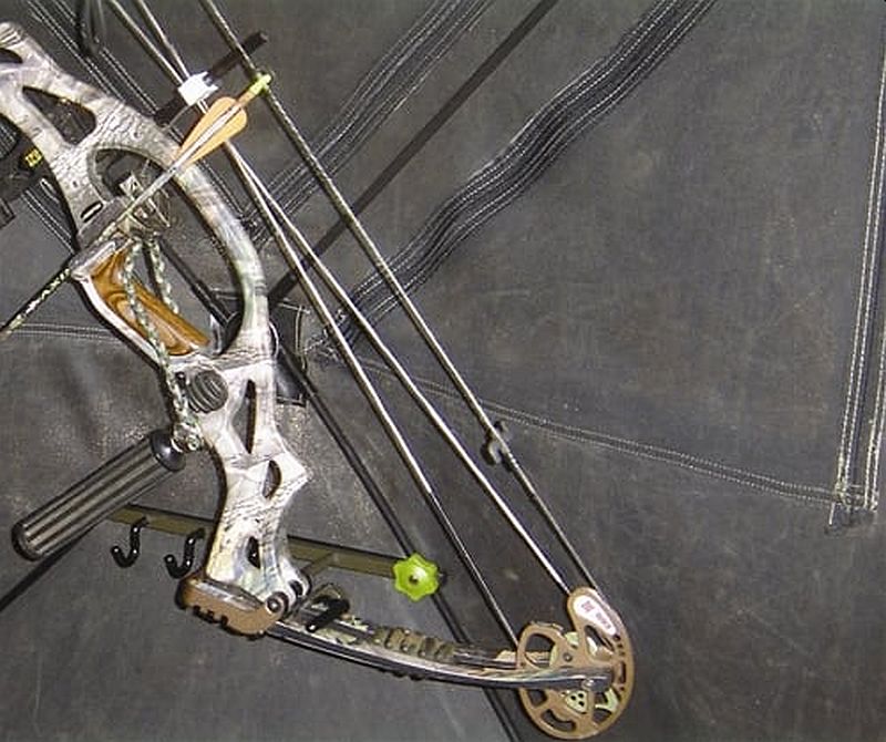The bow holder has three large accessory hooks to hold calls, rattle bag, binoculars, back pack, etc.
