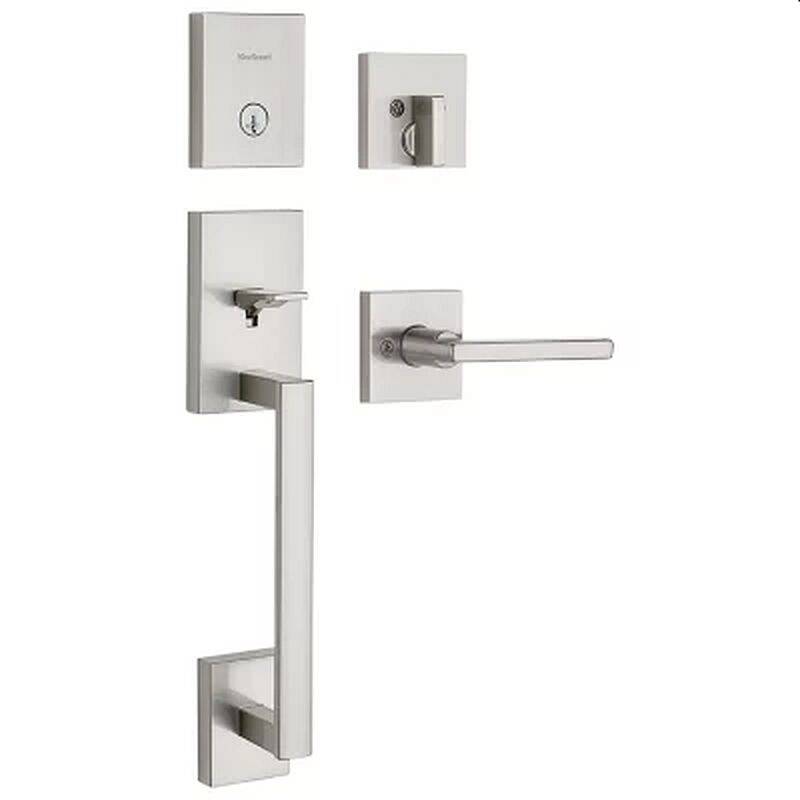 San Clemente Satin Nickel Handleset With Halifax Lever Deadbolt Keyed One Side