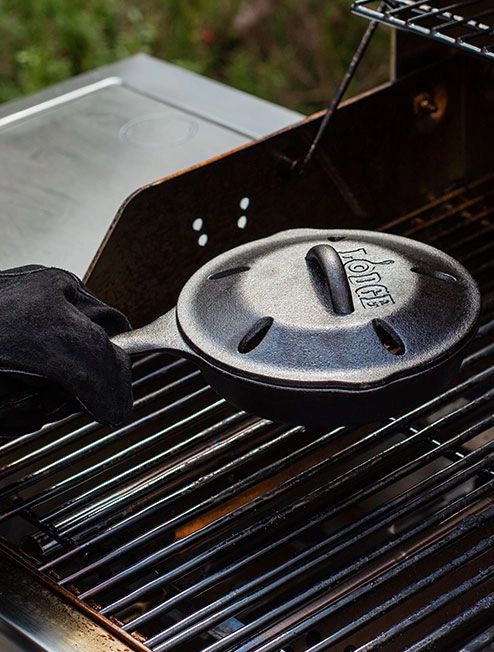 Serve food with great smoked flavor when you use the new Lodge Smoker Skillet. The vent holes, designed in our iconic teardrop shape, are sized and located for the optimal smoking of chipsand help keep chips in place. This cast iron smoker heats quickly so you can easily achieve that sought-after smoky flavor on your gas grill. The vent holes, designed in our iconic teardrop shape, allow the perfect amount of smoke to reach your foodand help keep chips in place. Use the primary handle and cast iron lid to easily refill wood chips as you cook. Crafted in America with iron and oil, this smoker is ready to help you deliver finger-licking moments for generations. The skillet handle and lid allow for easy lift and maneuver, unlike many smoker boxes on the market today. The lid handle also provides easy access to add or empty chips. This smoker skillet is made for decades of cooking and comes seasoned and ready to use.