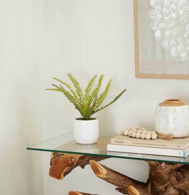 • The artificial plant is securely mounted on the white ceramic pot that adds grace and appeal to your home decoration