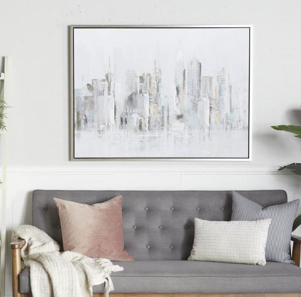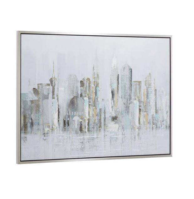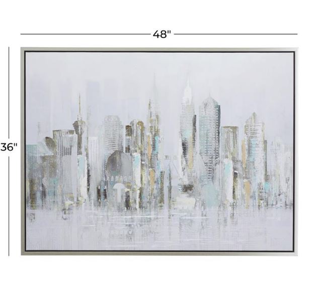 48 x 36-Inch Gray Contemporary City Framed Wall Art