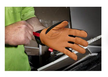 Our Leather Performance Gloves feature a durable palm with a lightweight design. The breathable work gloves have a lightweight back that provides you with all day comfort. The work gloves palms are made from a soft top grain goatskin leather for added durability and feature a hook & loop wrist closure for a secure fit. They have SMARTSWIPE touchscreen compatible fingertips so you can access your devices without taking off your gloves. MILWAUKEE offers Leather Performance Glove sizes S-XXL to assure you get the perfect fit.