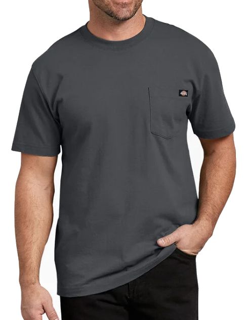 Meet your new go-to tee. The classic Dickies Short Sleeve Heavyweight T-Shirt is crafted from comfortable cotton that gets even softer with age. Made with heavyweight jersey knit fabric and taped neck and shoulder seams that up the durability factor, this tested and trusted men's t-shirt is one youll reach for year after year.
