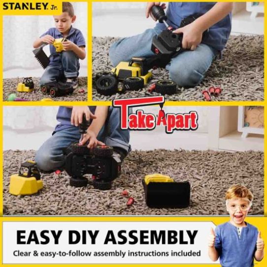 QUALITY CRAFTSMANSHIP: Our line of top quality STANLEY Jr kits are made of high-grade non-toxic ABS plastic with rubberized wheels; the set provides wholesome learning and fun as a take-apart STEM project that focuses on the construction industry; including an extra bolt, the 12 bolts are easy to handle by little hands using the plastic Phillips head screwdriver with built-in wrench; also added is a 2.5 in construction figure that fits inside the cab.