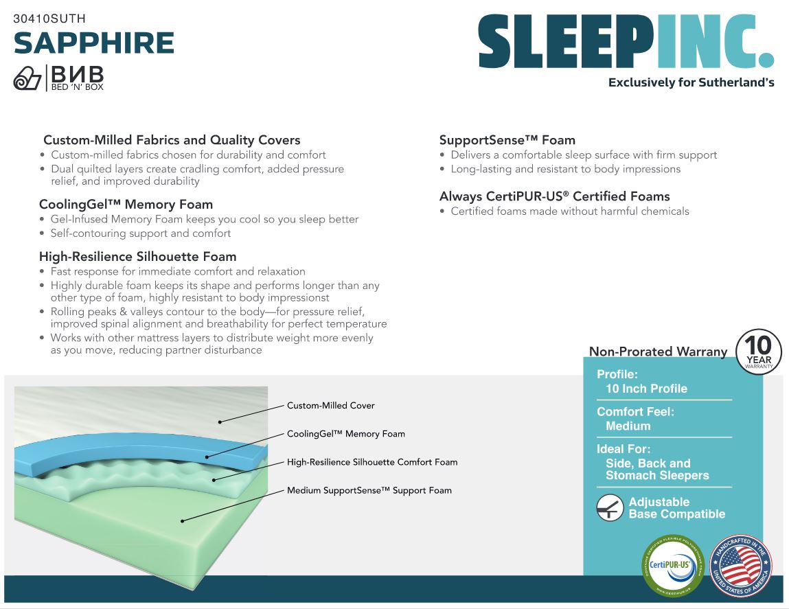 10-Inch Sapphire Bed-In-Box Gel Memory Foam Twin Mattress