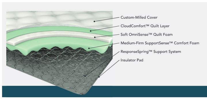 • CloudComfort Layer is breathable, soft cloud like comfort layer that provides cradling support.