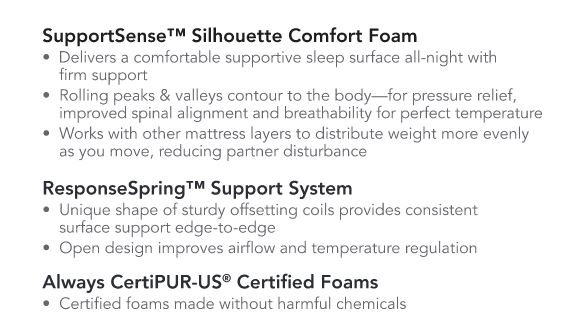 • SupportSense Comfort Foam delivers a comfortable sleep surface with firm support