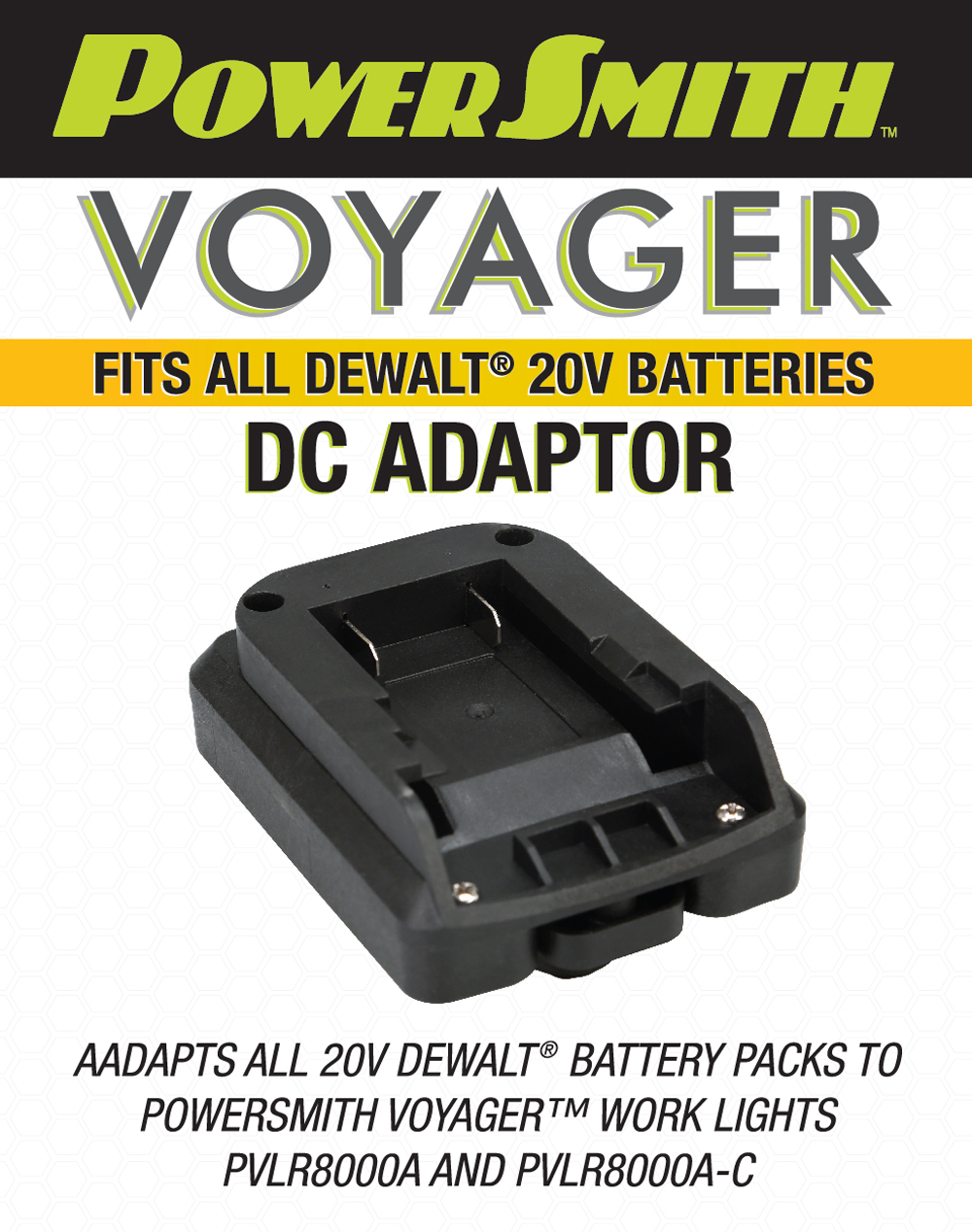 ADAPTS ALL 20V DEWALT BATTERY PACKS TO POWERSMITH VOYAGER WORK LIGHTS PVLR8000A AND PVLR8000A-C