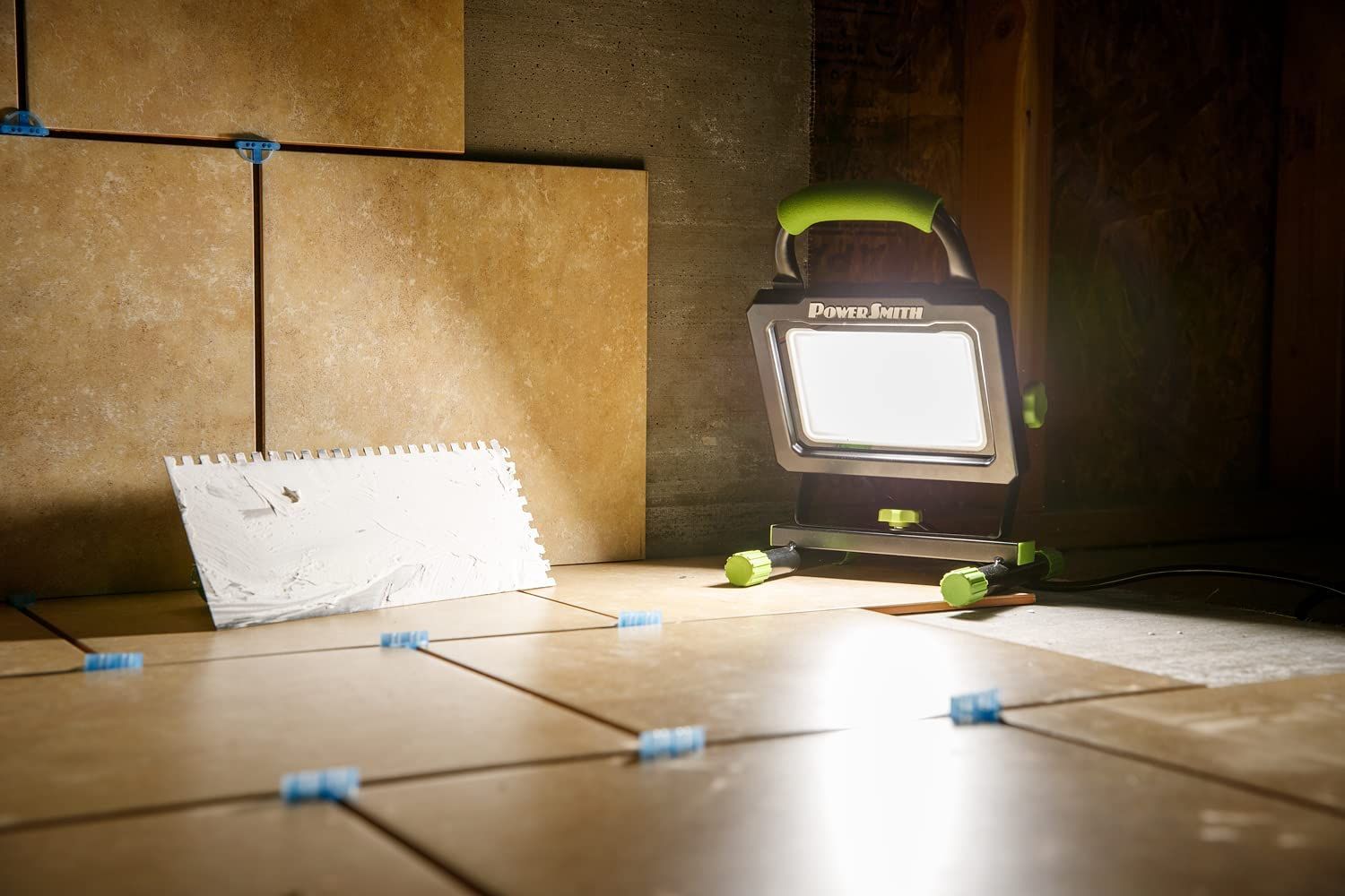 This 7000 lumen work light from PowerSmith has a voltage rating of 120 and a wattage of 55. It can be used indoors or outdoors to light up any project you are working on.