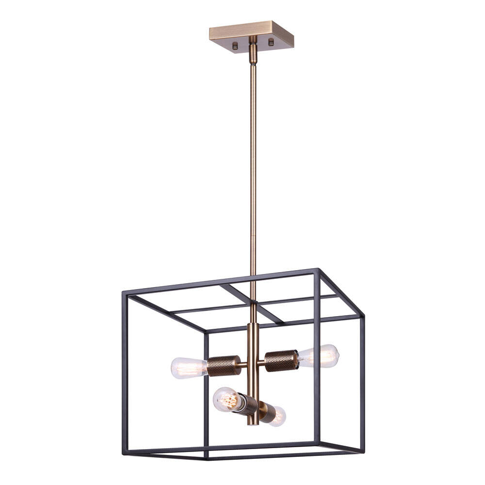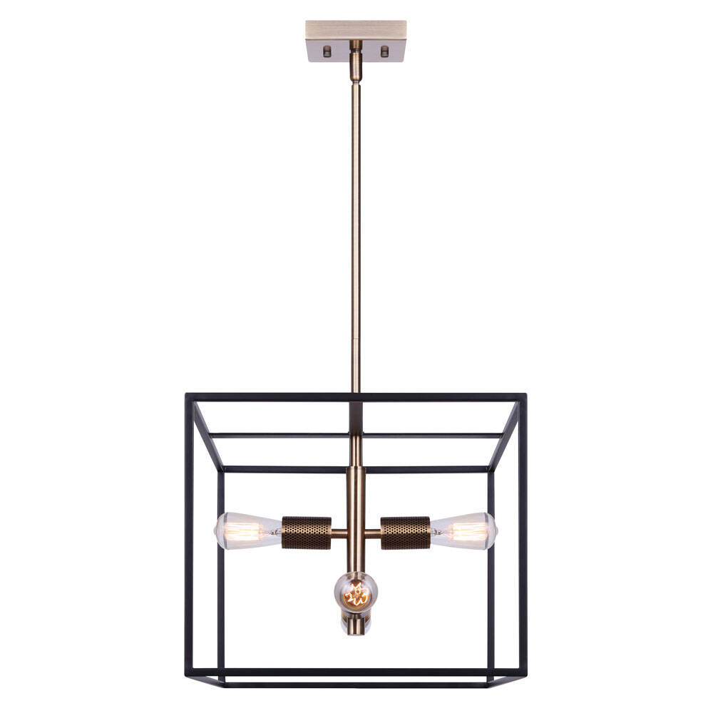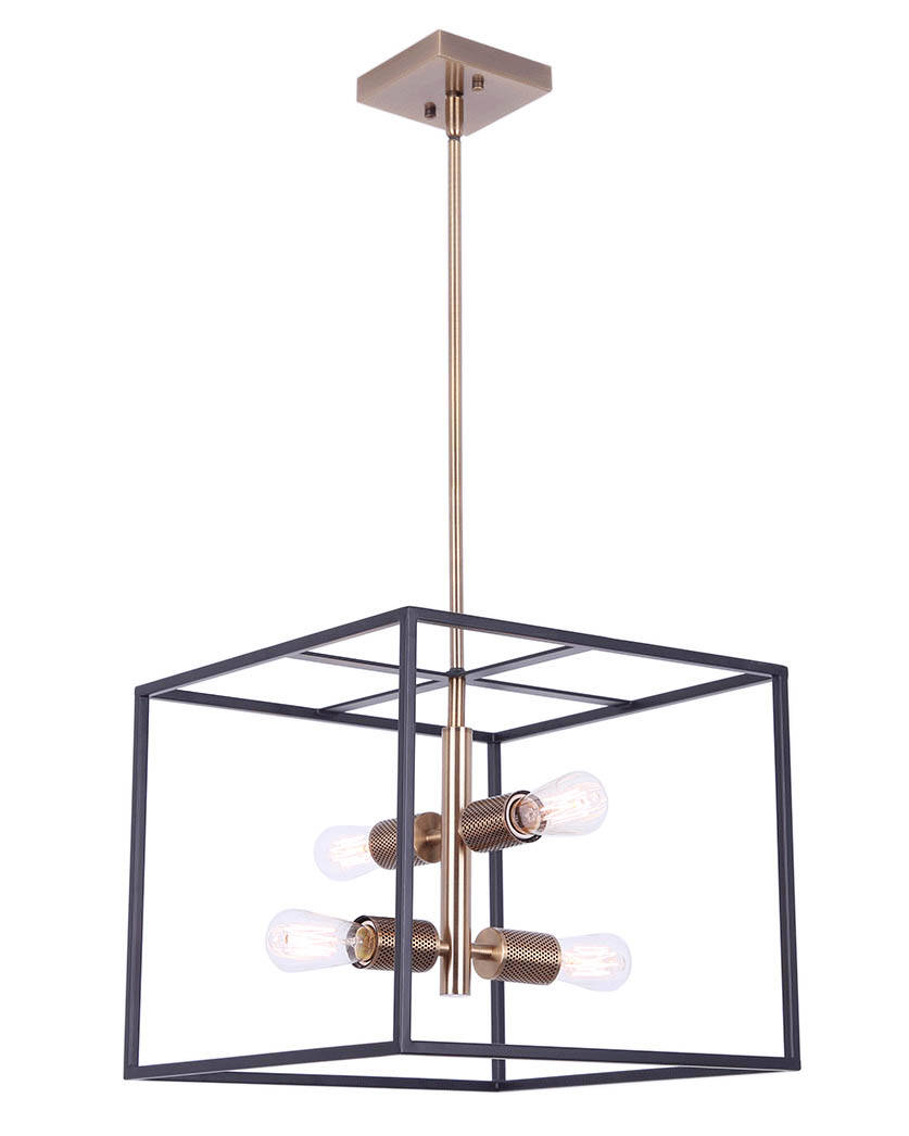 4-Light Square Matte Black And Gold Bodie Chandelier