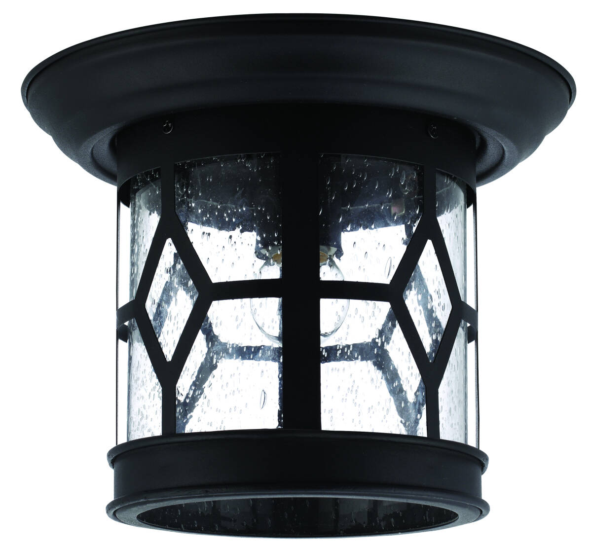 ATLANTA Outdoor Flush Mount with Seeded Glass and Black finish