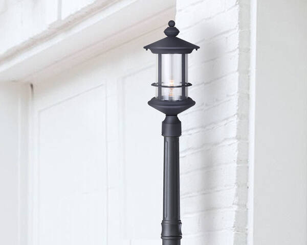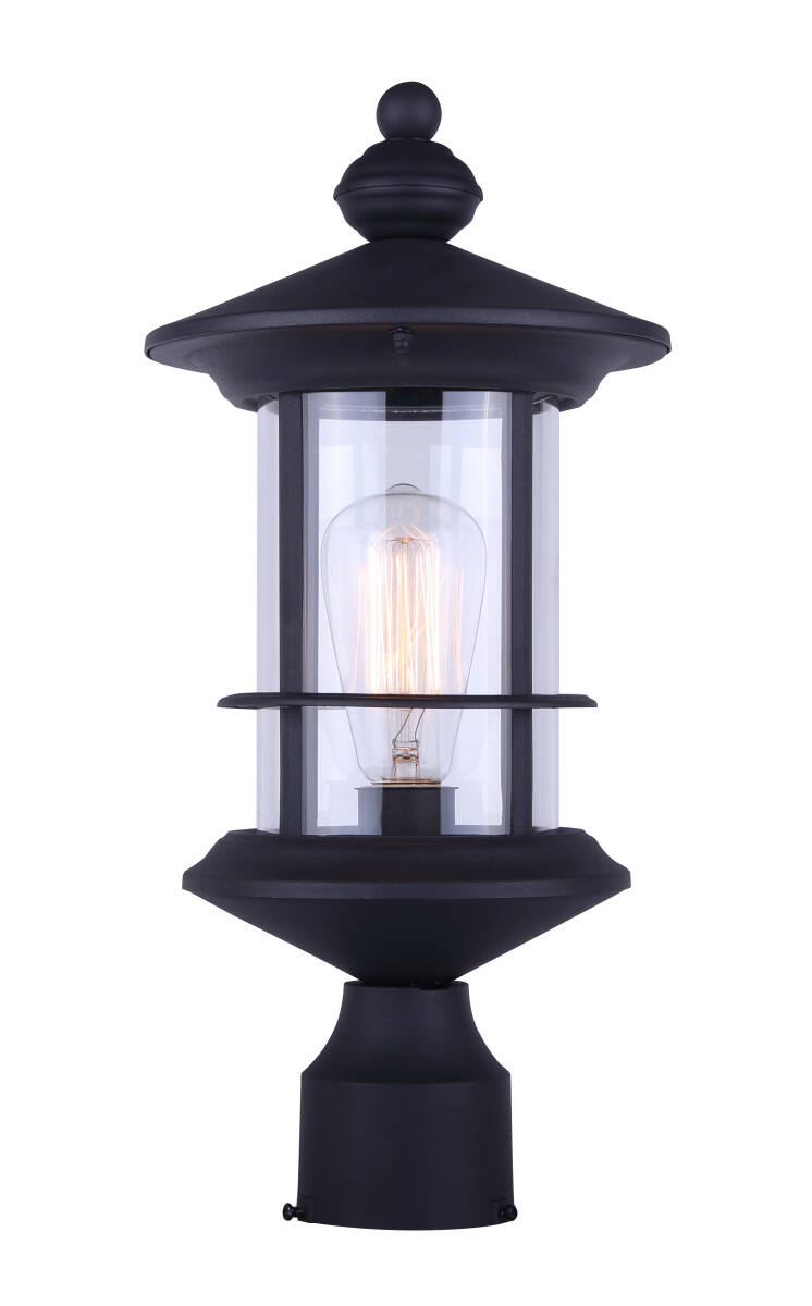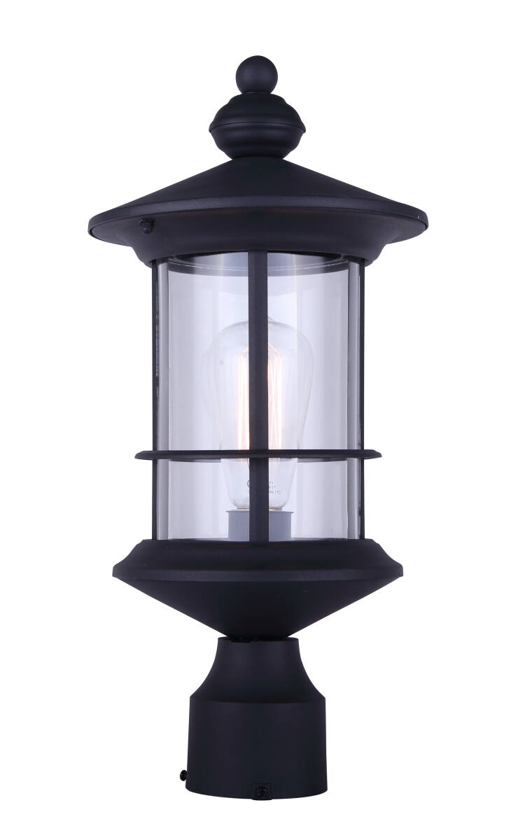 1-Light 17-1/4-Inch Black And Clear Glass Treehouse Outdoor Post Light