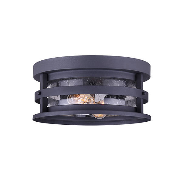 2-Light 5-1/2-Inch Black And Seeded Glass Flush Mounted Outdoor Light