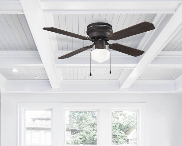 The 42-inch Neptune ceiling fan provides ample lighting for your daily needs while adding a layer of classic style to your home's decor. The transitional styling of the Neptune ceiling fan is evident in its clean symmetry and solid design elements. Paired with schoolhouse glass and 4 reversible maple and walnut blades, the Neptune ceiling fan will adapt to many different lighting decors.