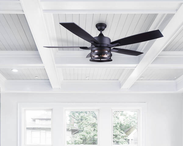 Enhance your living space with the 52-inch DUFFY ceiling fan. Featuring a classic black finish and seeded glass shade with 5 matte black blade, the DUFFY ceiling fan will add a tasteful accent to any space in your home.