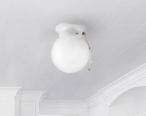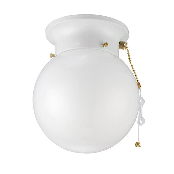 Ceiling or Wall mount light with Opal Glass, and Pull Chain Switch with a White finish.