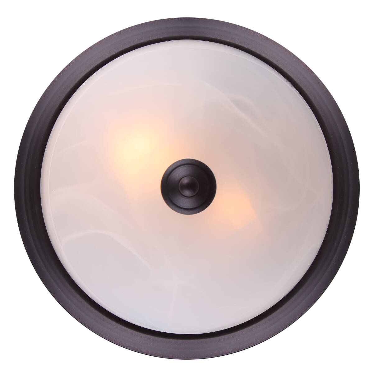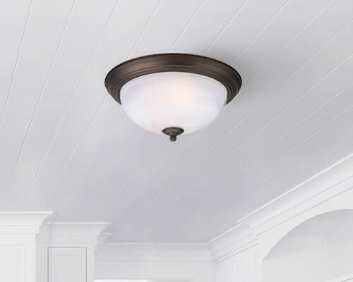 Flush mount light with Alabaster Glass and Oil Rubbed Bronze finish.