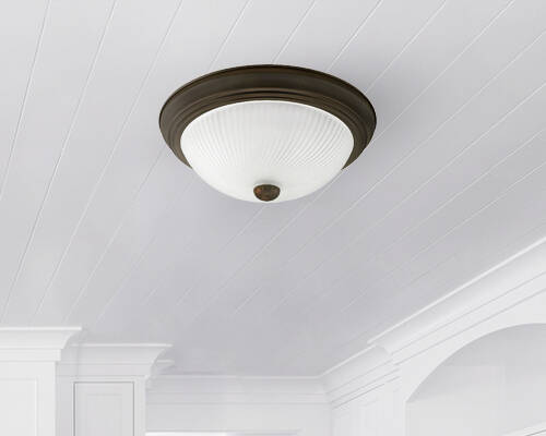 Twin Pack of Flush Mount lights with Frosted Swirl Glass and Oil Rubbed Bronze finish.