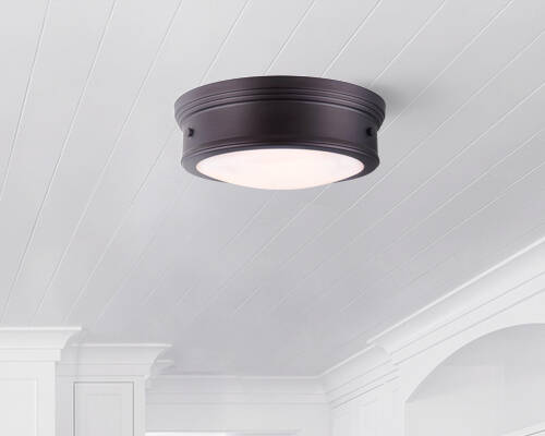 This flush mount from the Boku collection is sure to bring style to any room in your home. The Oil Rubbed Bronze finish and glass diffuser adds softness to your Dcor. This fixtures comes with Canarm's Easy Connect push in connection system giving homeowners freedom to change fixtures with a safe and secure installation.