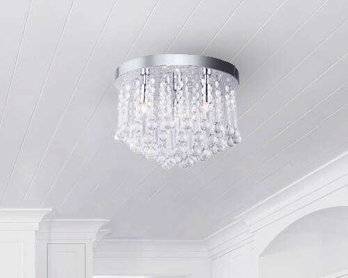 Daya Flush Mount light with Crystals and Chrome finish.