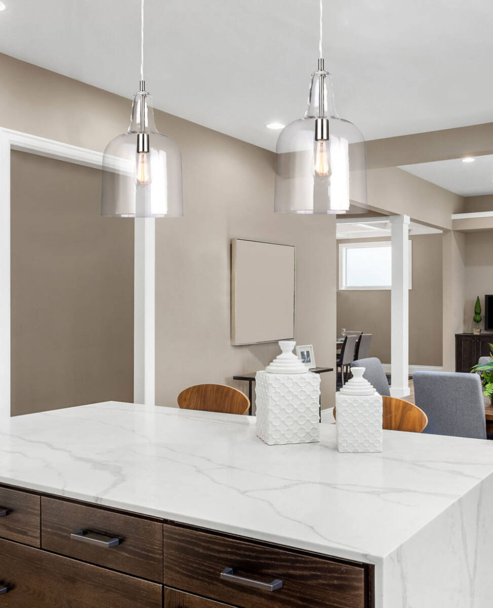 The charming silhouette of KEEVA adds a stylish look to this simple yet classy glass pendant light. Its curvy shape tapers at the top while rounding out to an open bottom that creates the perfect transitional piece for any room in your home. Its brushed nickel finish with a clear glass shade ensures that this classic piece will stay in style for years to come.