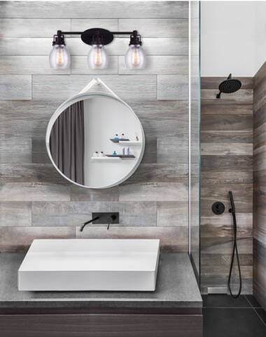 The vintage style of the CARSON collection gives a beautifully modern treatment to the familiarity and comfort of vanity lighting. Available in 4 lighting options in matte black with clear seeded glass shades, the CARSON vanity is sure to find a place in your decorating Dcor while providing the versatility of being mounted in up or down light positions. Complete the industrial feel by adding vintage style bulbs. This fixture also comes with Canarm's Easy Connect push in connection system giving homeowners freedom to change fixtures with a safe and secure installation.