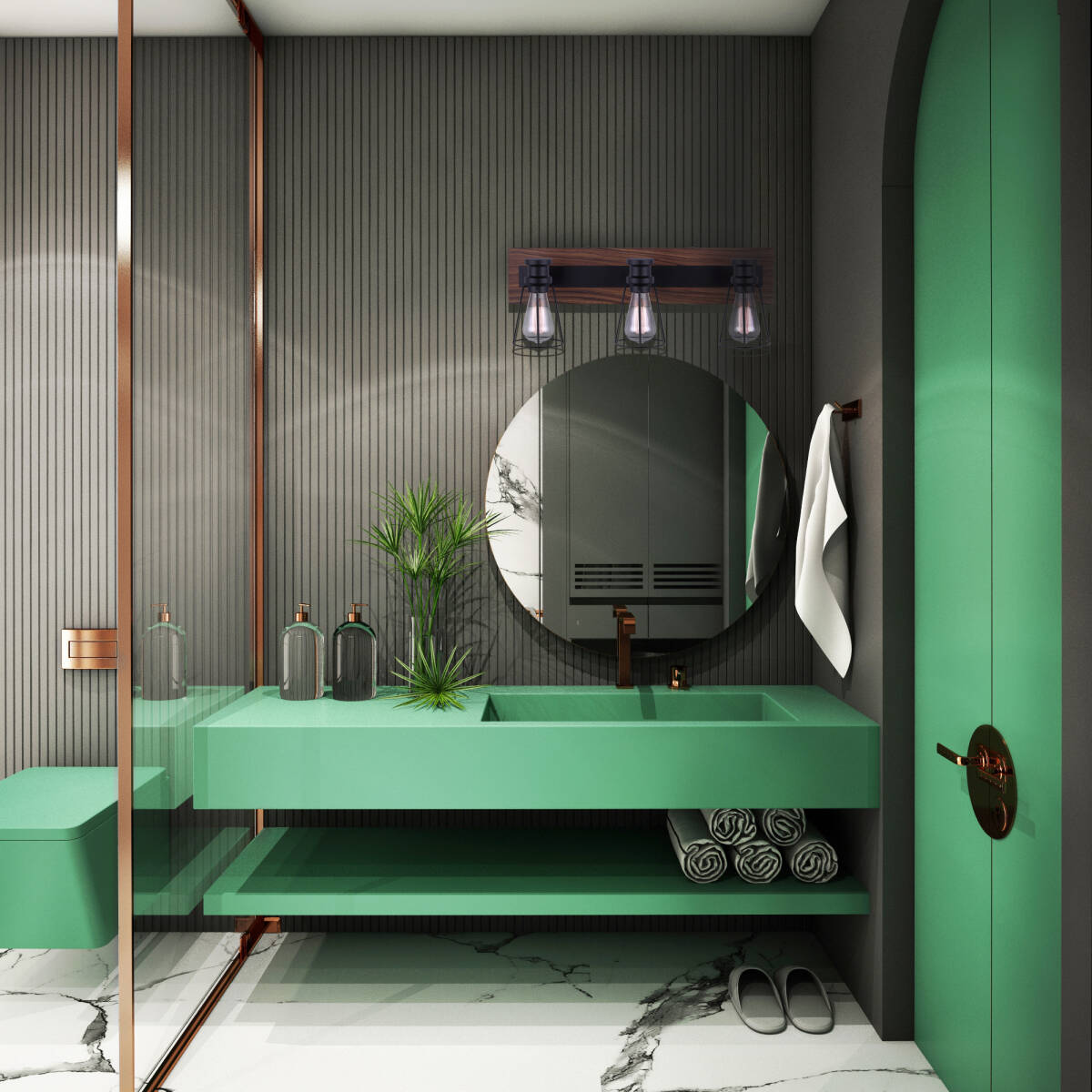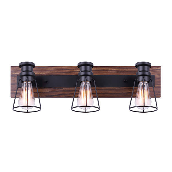 The industrial farmhouse feel doesn't have to begin and end in your kitchen and living room, add a touch of rustic design to your bathroom with the BLAKE 3-light vanity. BLAKE will highlight all angles of your visage without sacrificing your style, combining brushed nickel and wood finishes with metal cages as shades. This fixture also comes with Canarm's Easy Connect push in connection system giving homeowners freedom to change fixtures with a safe and secure installation.