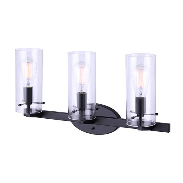 The JONI 3-light vanity can bring a simple elegance to your home when you are entertaining guests or it can bring a feeling of contentment when you are looking for a night in. Either way, JONI is perfect for any occassion with her thick clear glass shades and black finish.This fixture also comes with Canarm's Easy Connect push in connection system giving homeowners freedom to change fixtures with a safe and secure installation.