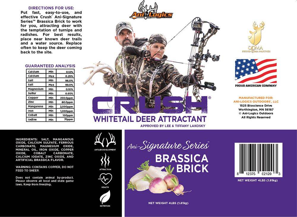 Whats the most important thing deer hunters look for in a brick? Attraction, Attraction, Attraction! Small in size, but big in taste, CRUSH®Ani-Signature Series™ Brassica Brick offers unbeatable attraction and the irresistible taste of brassica in a convenient, easy-to-use brick.