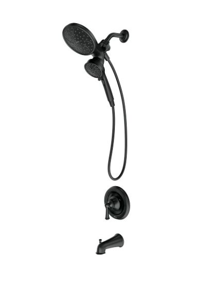Brecklyn™ Matte Black 1-Handle Tub & Shower Trim Kit - 6-Function Showerhead, 1.75 GPM, Posi-Temp® Pressure Valve Included