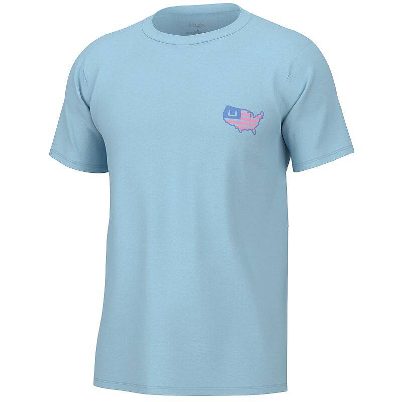 Crystal Blue American Logo Short Sleeve Men's Fishing Shirt, XL