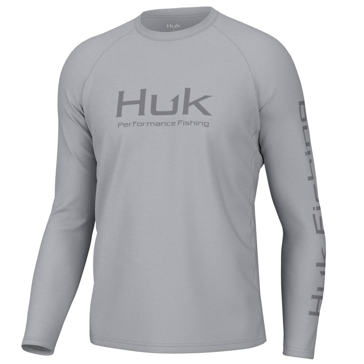 Small, Harbor Mist, 100% Polyester, Huk Vented Pursuit, Long-Sleeved T-Shirt