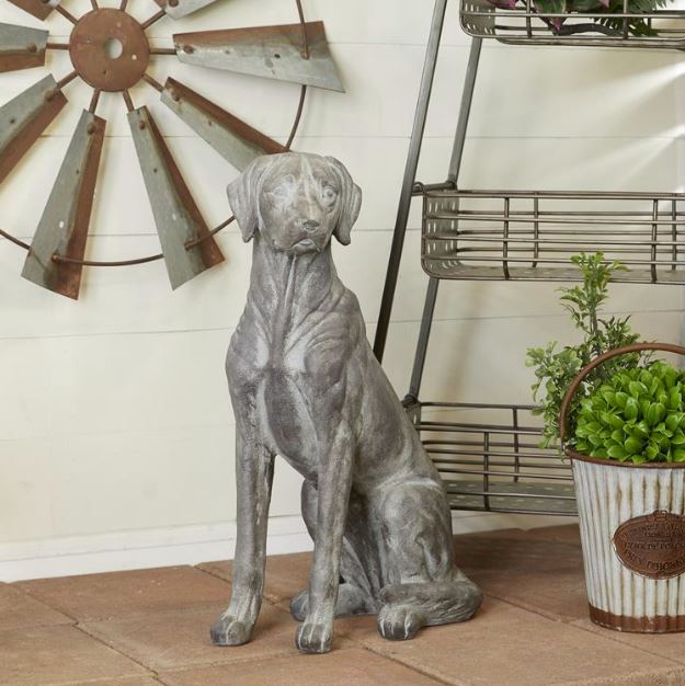 Inspired by an updated minimalistic design on a classic style, with the perfect harmony of weathered wood, sleek lines, and industrial accents that bring effortless comfort and warmth to the homeA modern farmhouse dog sculpture crafted of solid and smooth magnesium oxide that can stand the test of timeThis outdoor Labrador figurine features a textured matte gray finish with dusty light gray highlightsThis magnesium oxide garden sculpture features a large dog figurine in a sitting position with intricate facial characteristics