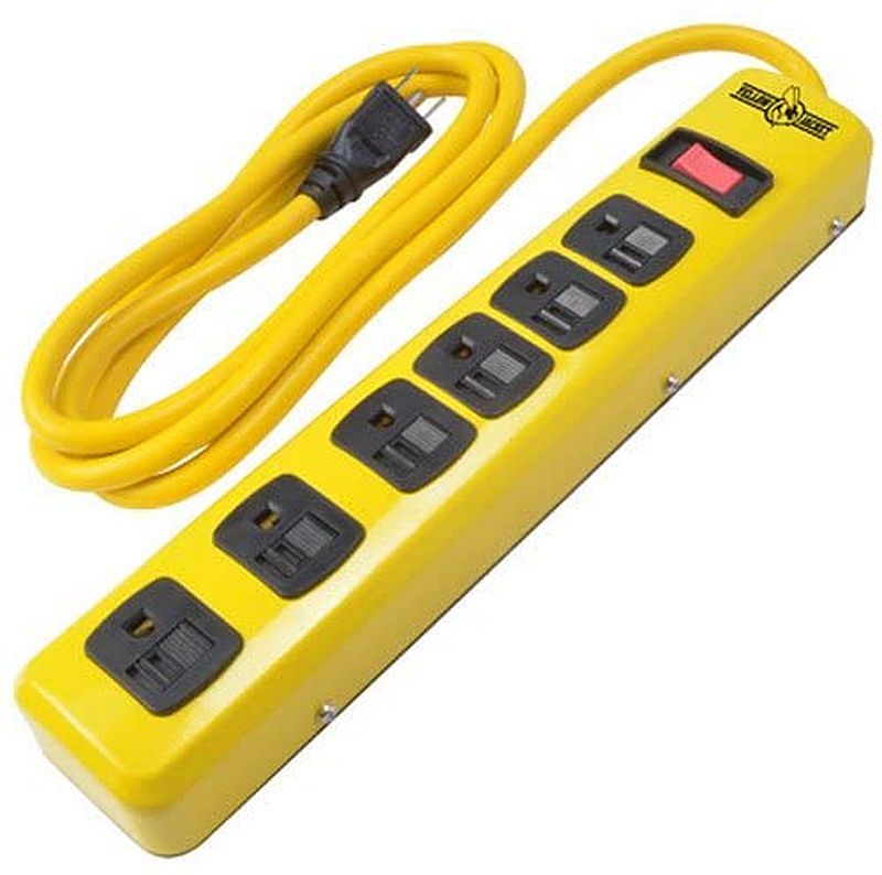 Yellow Jacket Metal Power Strip with 6-Foot Cord, 6-Outlet. 6 Grounded Outlets. Metal Body is stronger than plastic. Ideal for Workshops, and garages. Great solution for computers, laser printers, and home-theater systems. Safely adds outlets anywhere you need them with Overload protection.