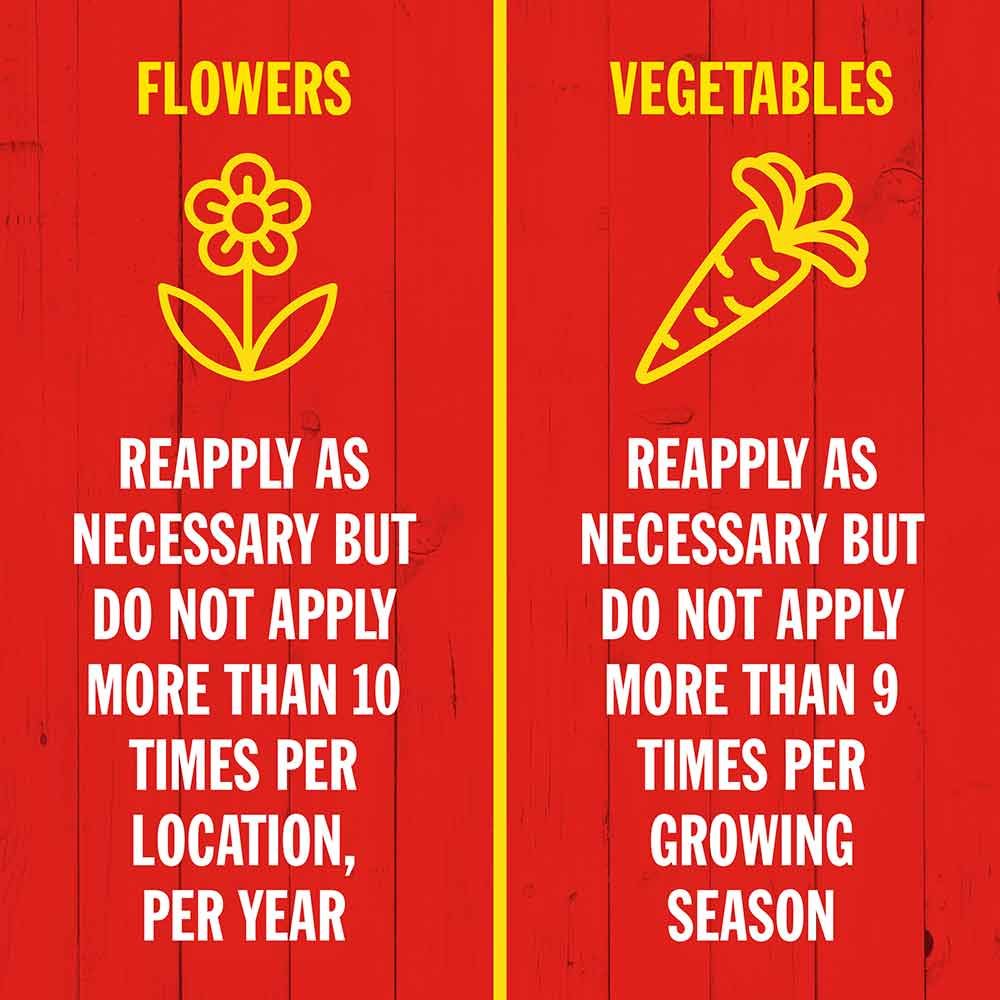 | Application | To protect lawns, vegetables, flowers, trees, shrubs, and other outdoor plants and surfaces, while killing over 130 listed insects |