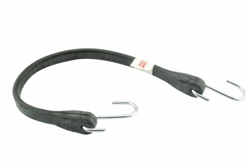 This strap helps tie down a tarp over your truck bed or trailer. EPDM rubber stretches for a good fit, S-hooks at either end attach to the tarp and to an anchor point on your truck or trailer. 34-inch hook to hook (31-inch rubber to rubber).