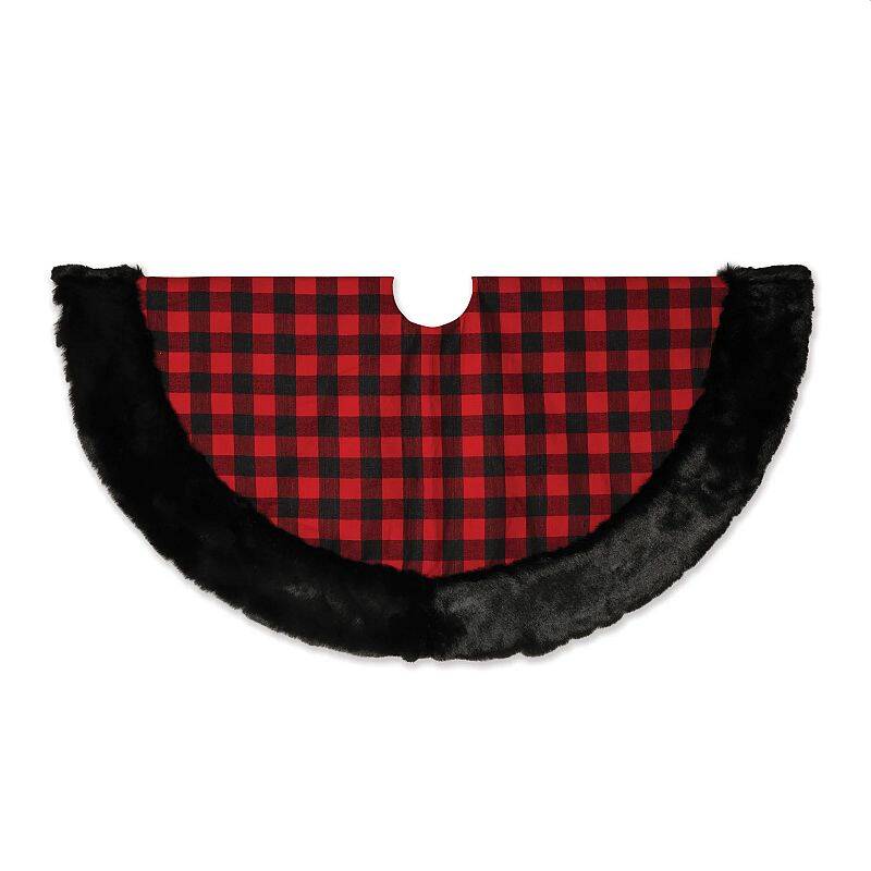 48-Inch Red And Black Plaid Christmas Tree Skirt With Faux Fur Border