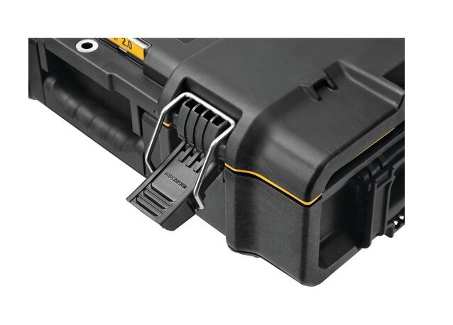 The ToughSystem 2.0 Toolbox offers one-hand operation with its patented auto-connect side latches and 2-piece metal front latches. This toolbox offers 20% larger* storage capacity when used with DWST08300 and DWST08450 as part of a tower. The ToughSystem 2.0 Toolbox is built for real jobsite conditions with high-impact protection**. It is IP65 rated for dust and water resistance and has a 110 lbs. load capacity. The toolbox contains 2 large organizer cups on the inside with removable dividers for optimal organization. The ToughSystem 2.0 Toolbox is backwards compatible with any ToughSystem product.