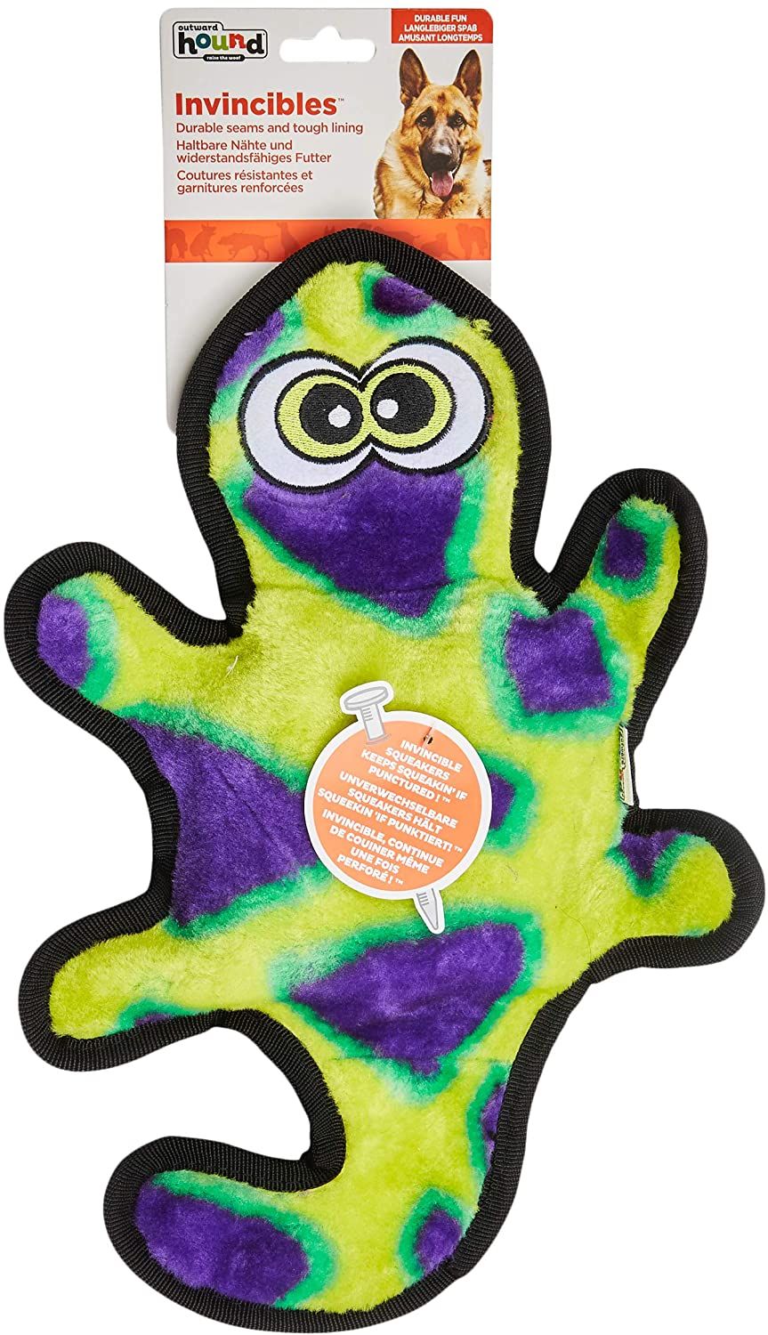 - Stuffing-free is the way to be for playful and rambunctious pups. Instead, our Invincible Geckos come with multiple squeakers for multiple rounds of toss and tug fun even when bitten!