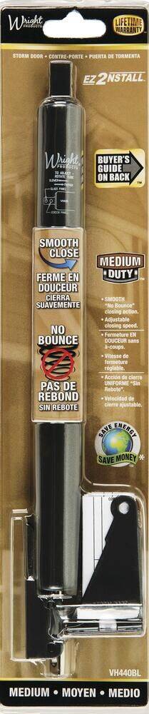 Wright Products Hydraulic Closer provides a smooth "no bounce" closing action. It features a full 90-degree opening range, adjustable closing speed and two-hole end plug for adjustable latching power. The closer is compatible for all out-swinging storm or screen doors. Use alone for light and medium weight doors or in pairs for heavier full view storm doors.