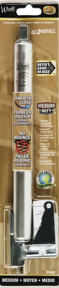 Wright Products Hydraulic Closer provides a smooth "no bounce" closing action. It features a full 90-degree opening range, adjustable closing speed and two-hole end plug for adjustable latching power. The closer is compatible for all out-swinging storm or screen doors. Use alone for light and medium weight doors or in pairs for heavier full view storm doors.
