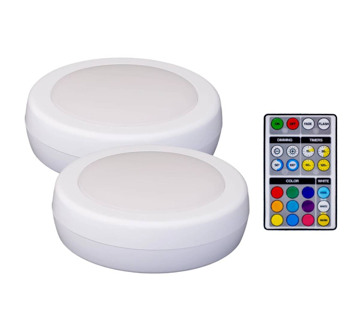 White 150-Lumen LED Color-Changing Adjustable Puck Light, 2-Pack