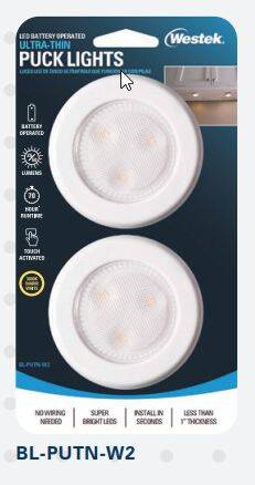 The Westek compact puck light is bright, long-lasting and installs quickly and easily for instant light to enhance small spaces. Add light in and under-cabinets, closets, pantries, laundry rooms, hallways, garages, shelving and more.