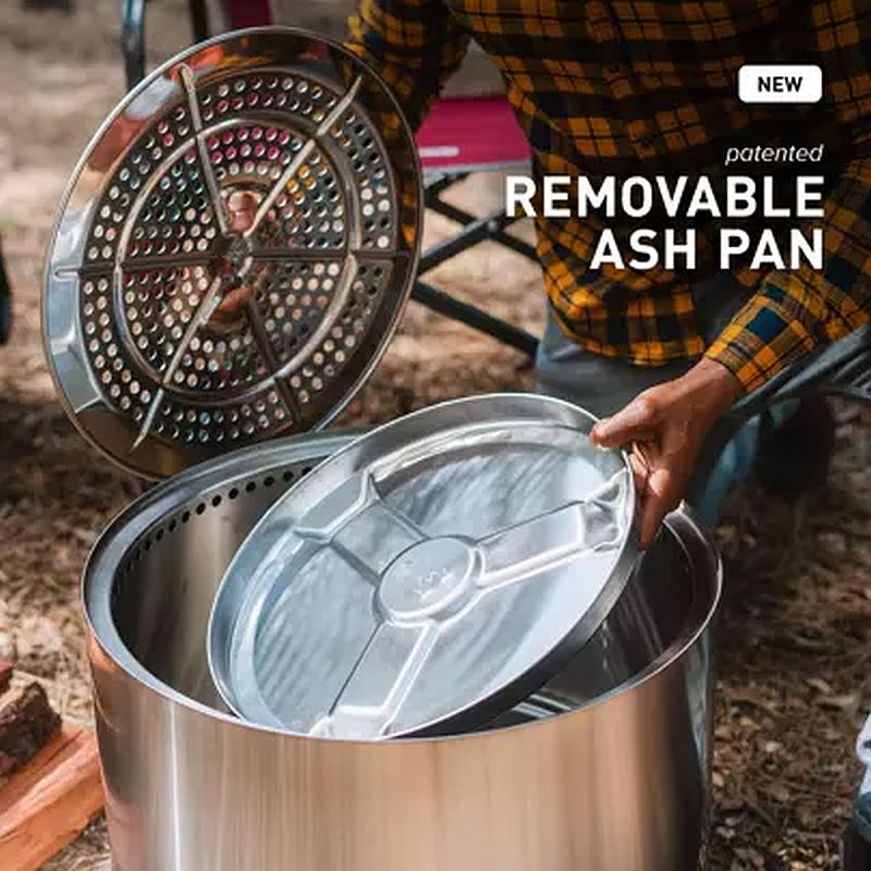 - You don't need a special tool to clean your fire pit. Bonfire’s new, removable ash pan rests under the removable base plate, catching all that fine ash in one place. Just lift the base plate to remove the ash pan, clean out its contents, and that's it!
