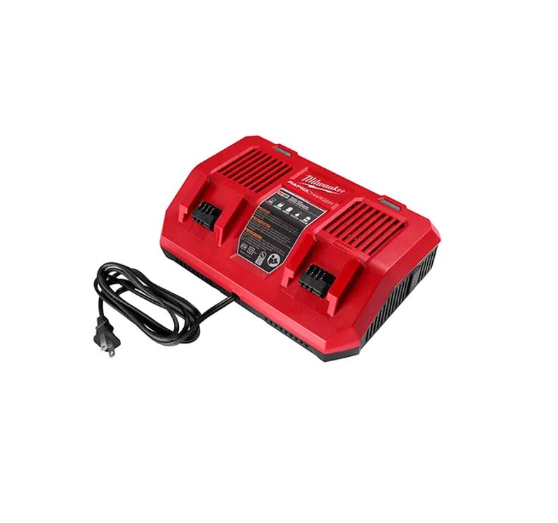 The M18 Dual Bay Simultaneous Rapid Charger is capable of charging 2 battery packs simultaneously, over 3X faster than standard sequential chargers. The charger accepts all M18 batteries. Equipped with REDLINK Intelligence, this charger communicates directly with M18 batteries to monitor cell voltage, temperature and charge status to deliver the best combination of charge duration and pack lifespan. Simultaneously charging batteries at a rapid charge rate massively reduces downtime and maximizes productivity. Its compact size makes this an ideal charger to carry on and off the job, hang in a work trailer, or charge on the top shelf of a job box.