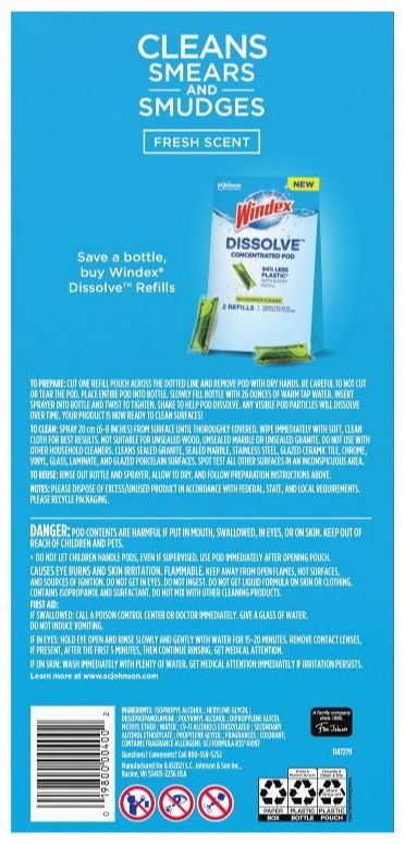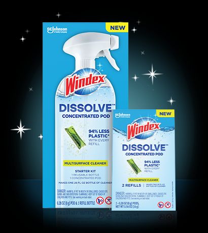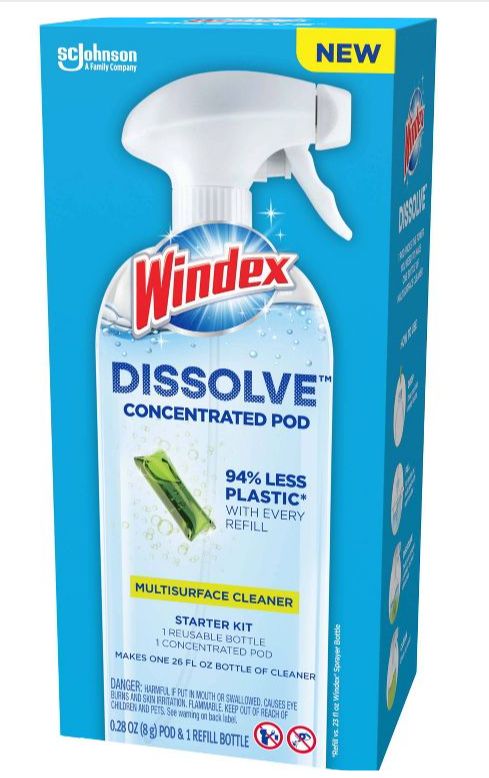 The future of cleaning means using less plastic, and the future is already here with Windex® Dissolve™ Concentrated Pod Multi-surface Cleaner! From the brand you love, this new and easy way to clean everyday messes and spills saves 94%* plastic with every refill. (*Refill vs. 23 fl oz Windex Sprayer Bottle). Makes one 26 fl oz bottle of cleaner