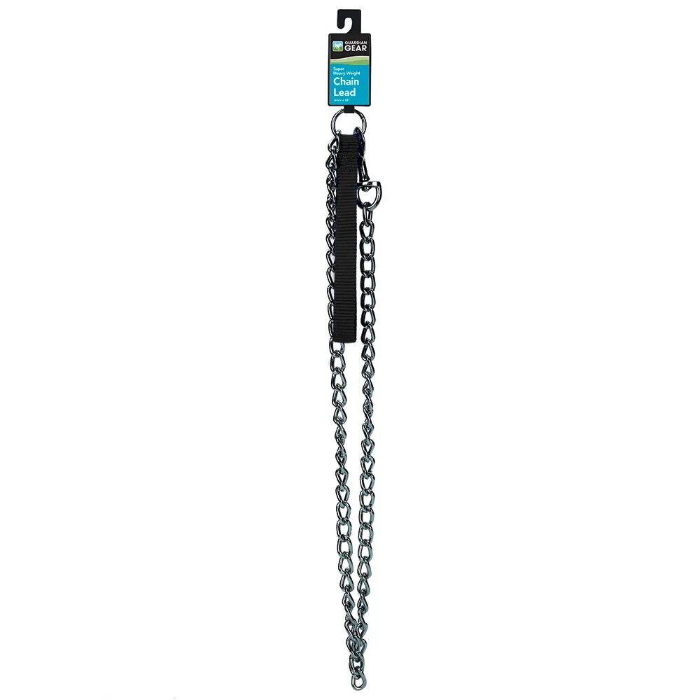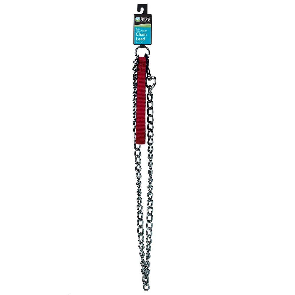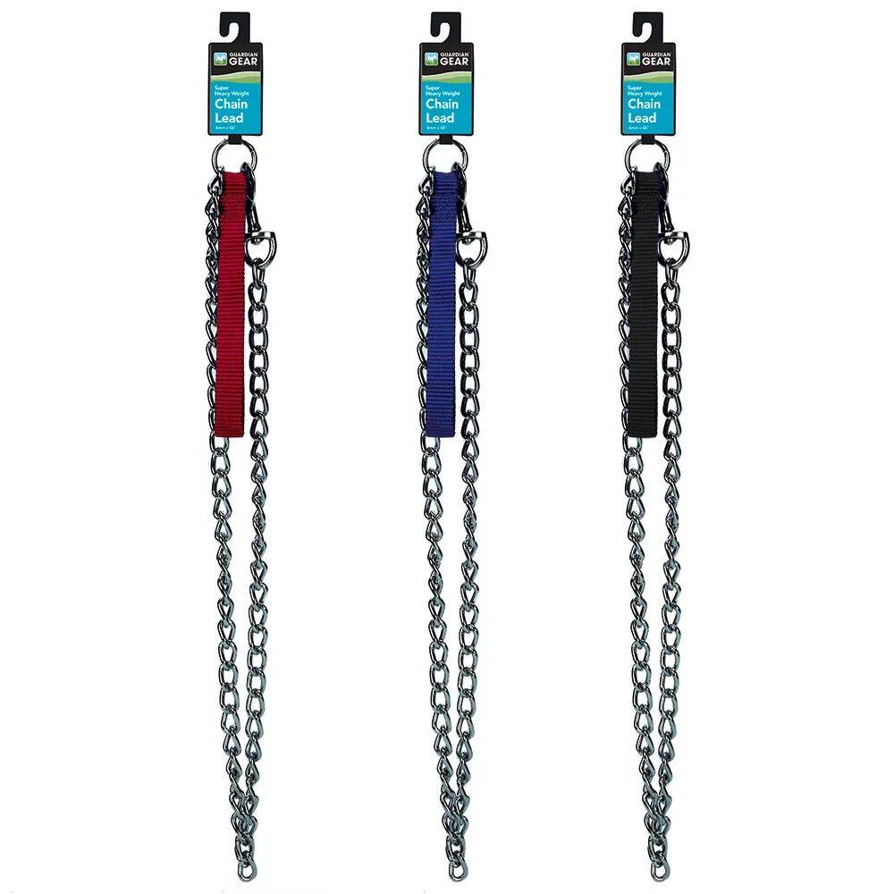Ultra-strong, high-quality chrome chain leads feature rugged electronically welded steel construction and nylon handles for comfort. A perfect match to our Guardian Gear Chain Collars for the smart training solution that's built to last. High quality Steel. Handles are assorted Red, Blue, or Black.